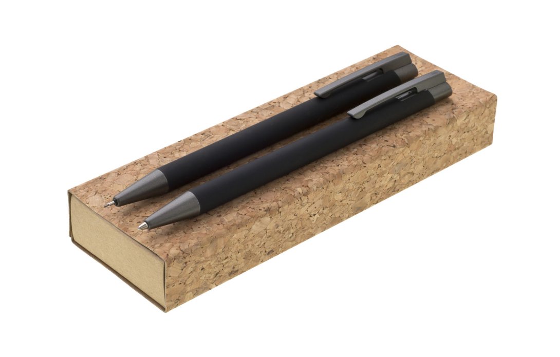 Sada ORIN šedá, tužky jsou vyrobeny z hliníku, na těle mají 2 stříbrné proužky a doplňky. Dodávají se v papírové krabičce.